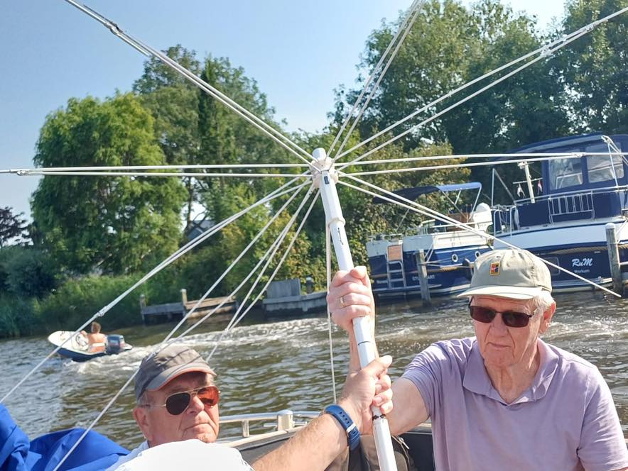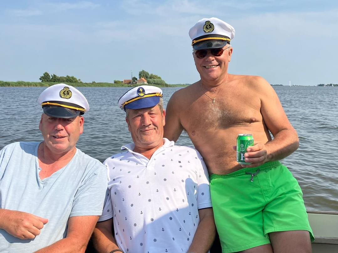 De Vutters hebben weer een druk jaar achter de rug waar diverse werkzaamheden zijn verricht. Ongemerkt verrichten zij veel werk voor de club en één keer per jaar wordt er dan ook niet geklust en trekken zij er op uit. Bootje varen blijkt toch het favoriet uitje voor deze club ouderen. Door omstandigheden kon helaas niet iedereen van deze klussenploeg mee. Vorig jaar werden nog twee kleine sloepjes in Earnewald gehuurd, dit keer werd gekozen voor een extra grote sloep waar zij met z’n allen (11 pers) mee konden varen in en rondom het mooie Workum. Met een mooie bus die aangeboden werd door AutoFirst – Auto Kort B.V. uit Oosterwolde (nogmaals bedankt Wiebe) werd al vrij vroeg koers gezet naar Workum. Na overleg met de booteigenaar werd besloten om de route Workum – IJsselmeer – Hindeloopen – Koudum – Gaastmeer te varen. Op het IJsselmeer waaide de parasol van Arend nog uit de boot, in Hindeloopen hebben we een terrasje opgezocht waar we hebben gegeten en gedronken, in het Gaastmeer hebben nog drie dappere Vutters verkoeling in het water gezocht en bijna terug in Workum vloog ook nog eens het doek van de parasol. Ter afsluiting van deze mooie, warme en dorstige dag werd ook nog een bezoekje gebracht aan de plaatselijk pizzeria alvorens weer koers werd gezet naar het pittoreske Veenhuizen. Al met al kunnen deze harde werkers terugkijken op een mooie dag en gaan ze volgende week weer vrolijk verder met de diverse klussen.