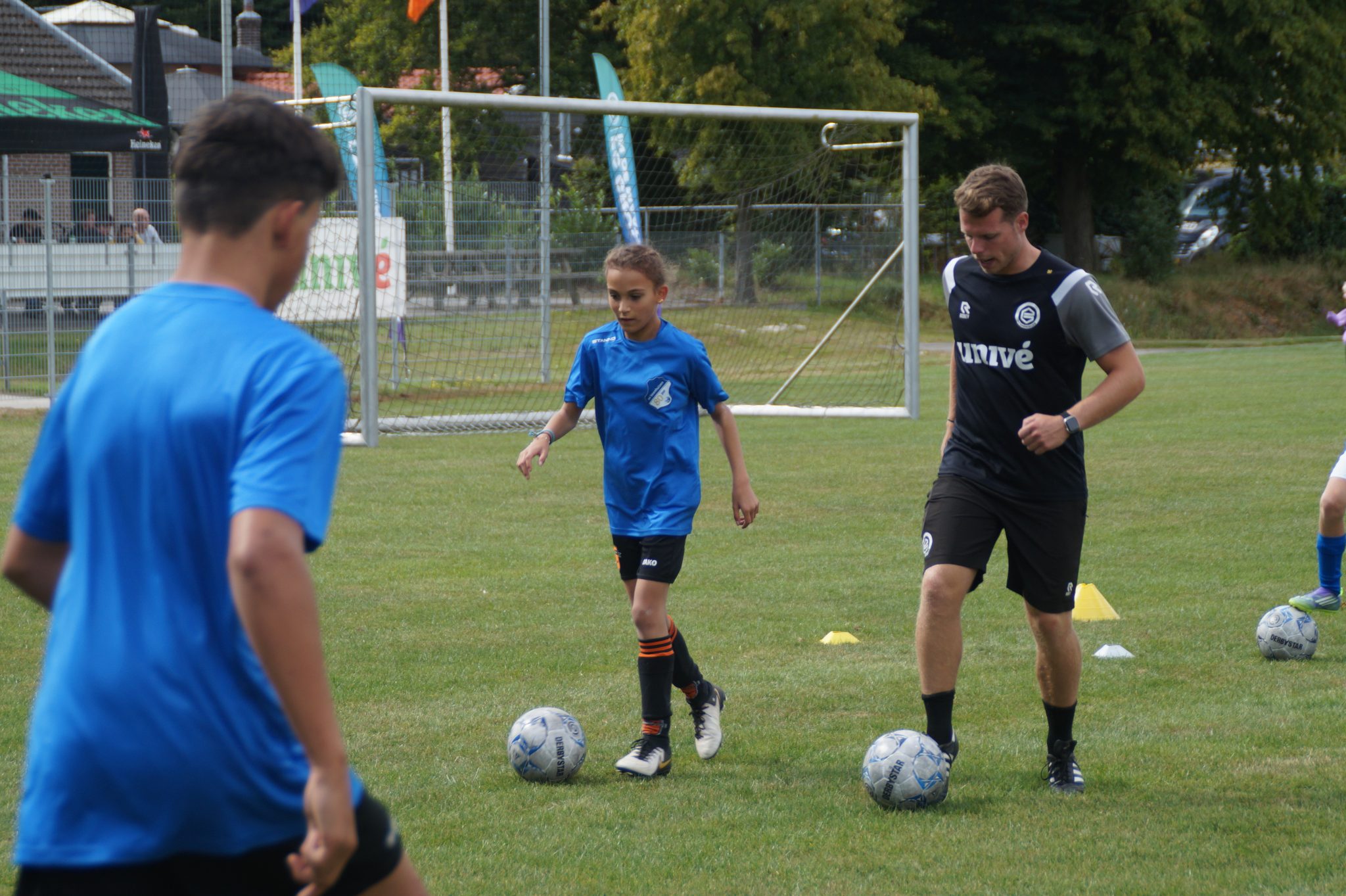 18 jeugdleden uit JO10, JO11, JO13 en JO15 hadden zich opgegeven. Om de verschillen niet te groot te laten worden werd de groep opgedeeld in 2 groepen. Namelijk een groep JO10/JO11 en een groep JO13/JO15. Beide groepen werkten wel een gelijkwaardig trainingsprogramma af. Na ongeveer 3 kwartier werd er even een korte drinkpauze gehouden om vervolgens met het 2e deel van de clinic verder te gaan. Voorafgaand aan de clinic kreeg elke deelnemer een speciaal jubileumshirt met het 80 jaar vv Veenhuizen logo erop.