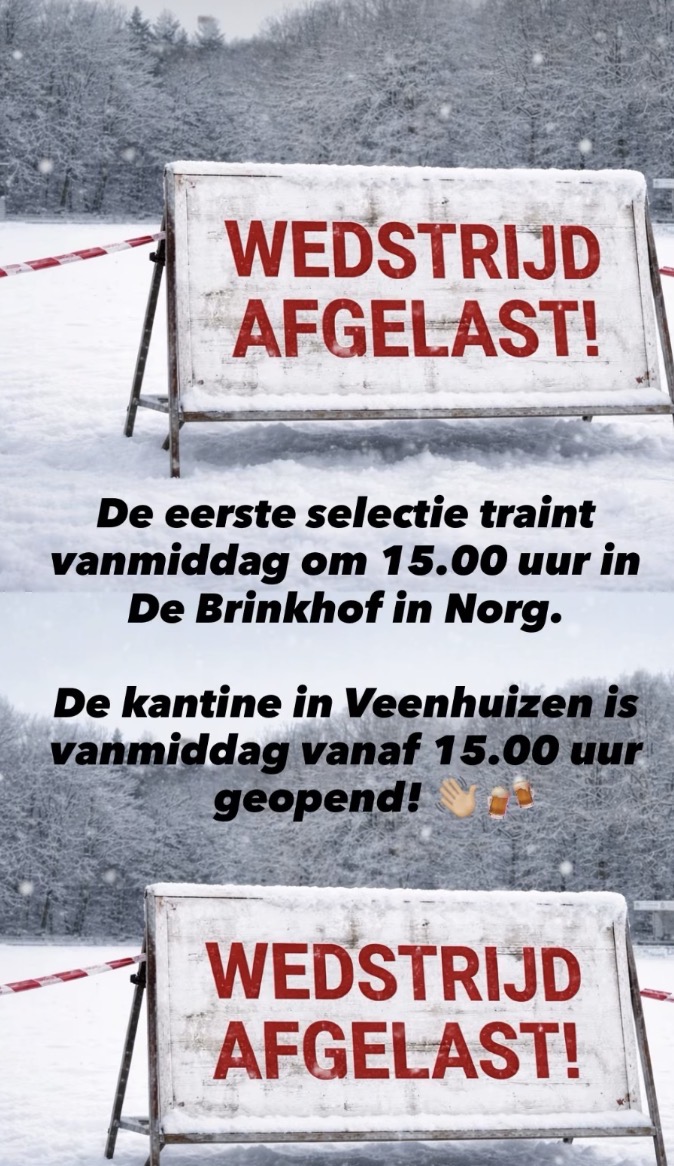 Koning Winter is taai dit jaar en is er dus wederom geen voetbal mogelijk op het sportpark Achter de Molen.